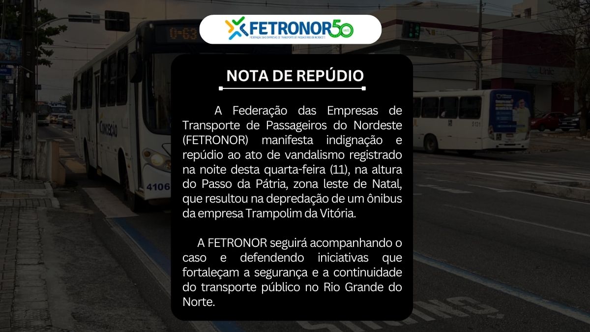 A FETRONOR representa e fortalece o transporte coletivo no Rio Grande do Norte, Paraíba e Pernambuco. Há 50 anos, promovemos mobilidade urbana com qualidade, segurança e inovação, impulsionando o desenvolvimento regional.